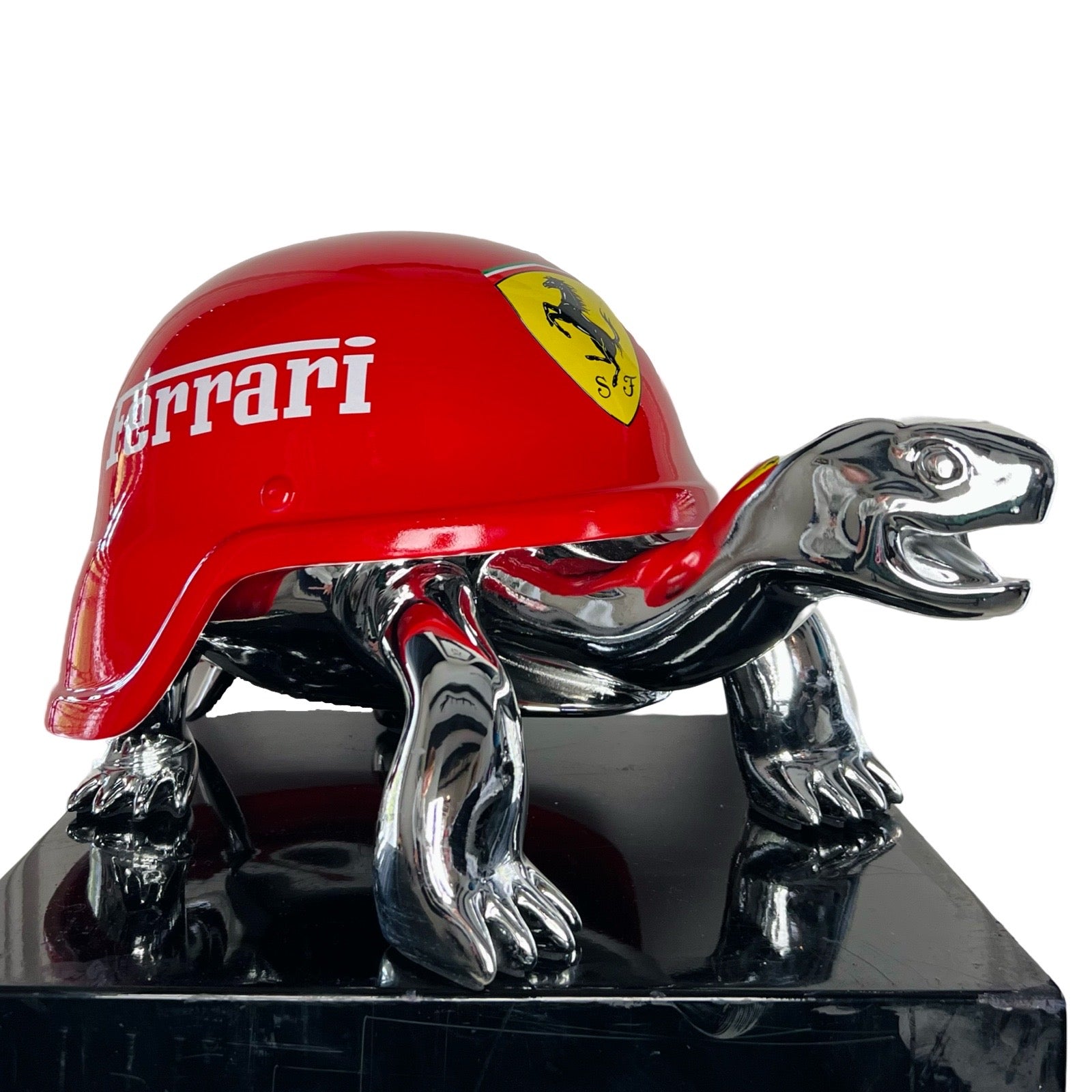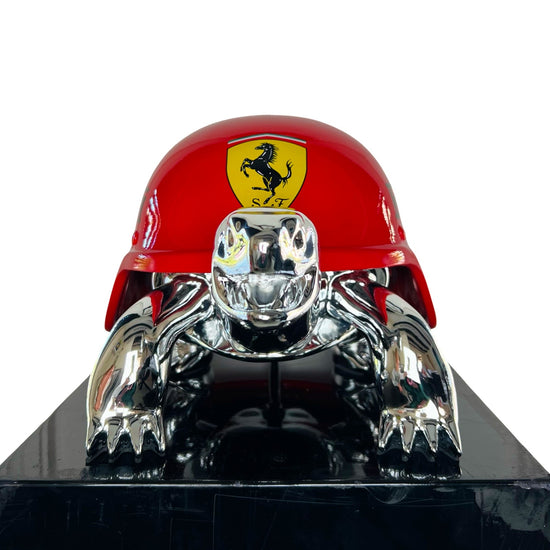 Van Apple created the Peace Turtles on his own artistic way. He gave the turtles a helmet instead of their shell, to show his love and respect for these protected species. The turtles are created in gold to express their value and are given a colorful and contemporary helmet, each design makes a statement.