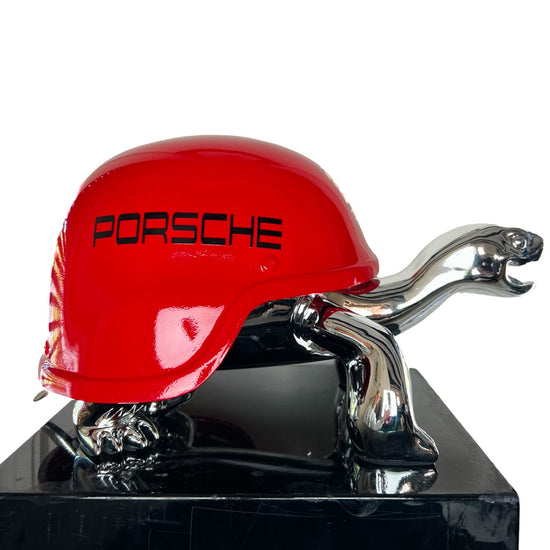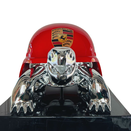 Van Apple created the Peace Turtles on his own artistic way. He gave the turtles a helmet instead of their shell, to show his love and respect for these protected species. The turtles are created in gold to express their value and are given a colorful and contemporary helmet, each design makes a statement.