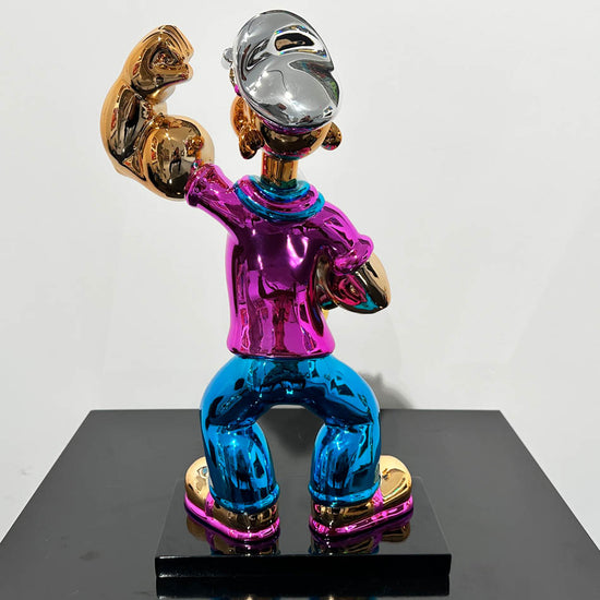 Van Apple created the Popeye on his own artistic way. The sculpture is handmade of Chrome with Resin, 42 cm high and hand-signed by the artist.