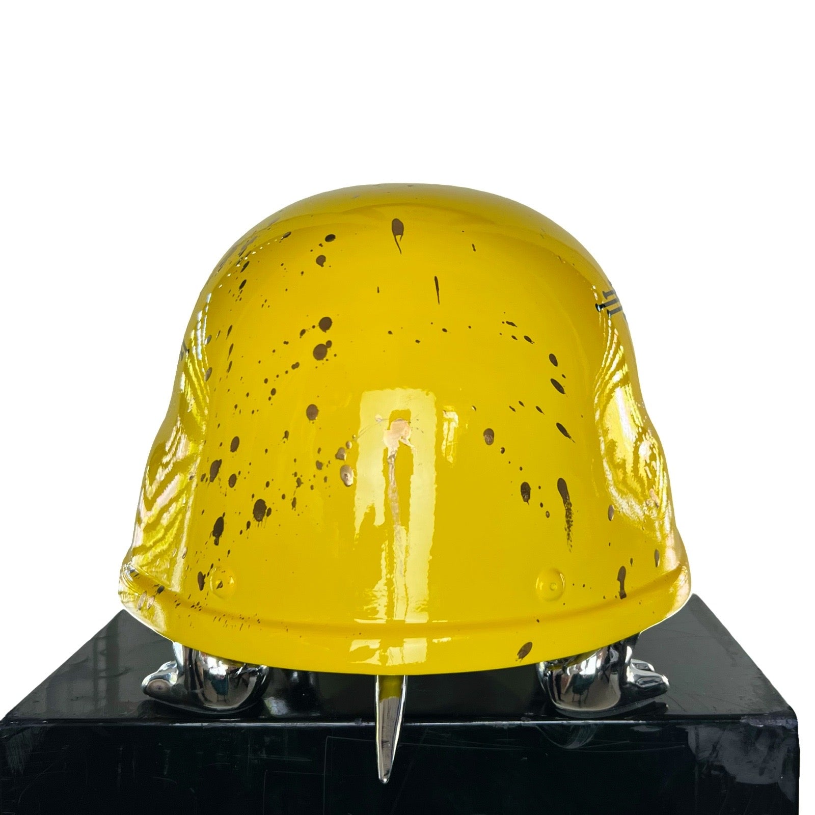 Van Apple created the Peace Turtles on his own artistic way. He gave the turtles a helmet instead of their shell, to show his love and respect for these protected species. The turtles are created in gold to express their value and are given a colorful and contemporary helmet, each design makes a statement.