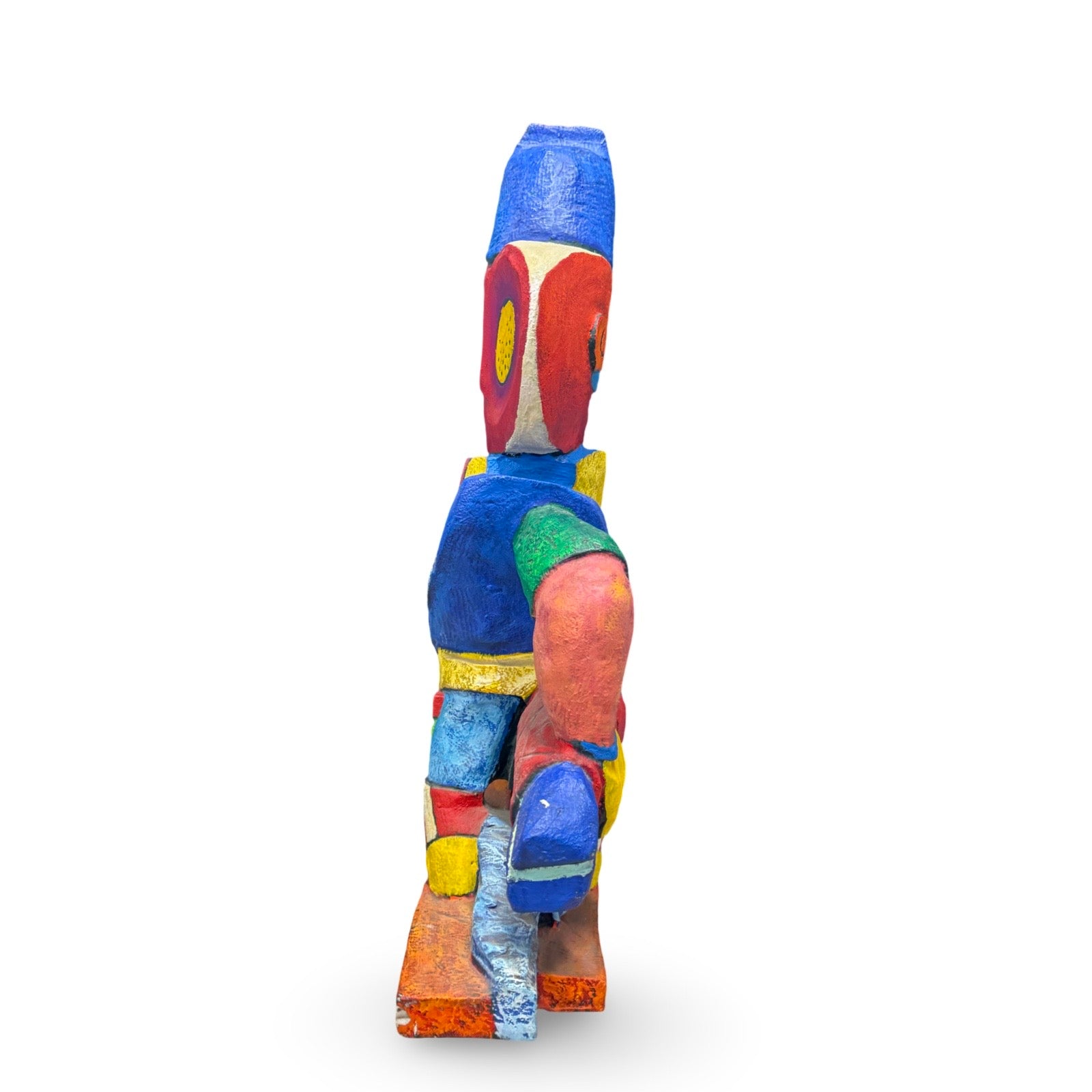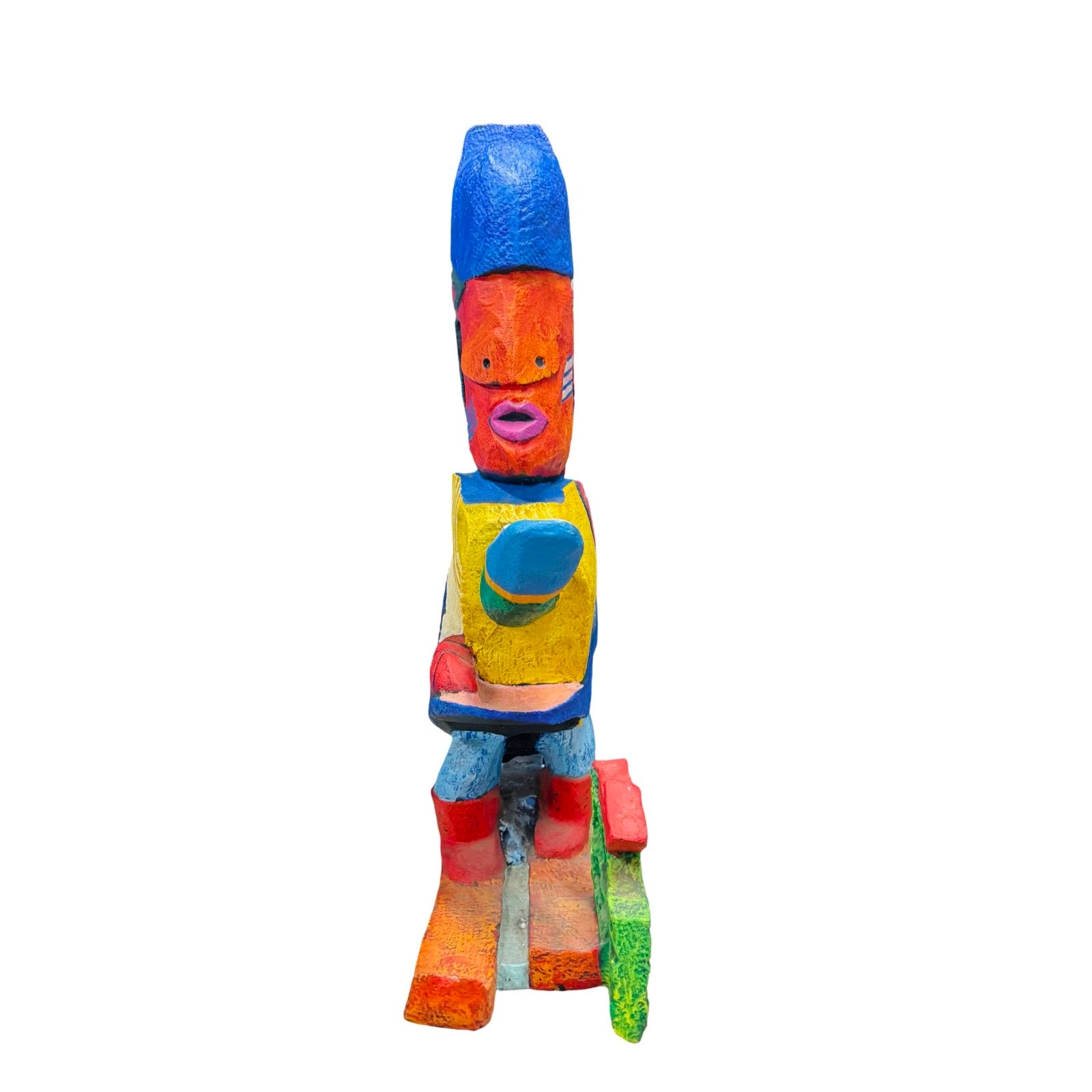 His work consists mainly of paintings and sculptures . He draws his inspiration from his own world of experience, together with the impressions he gets everywhere.