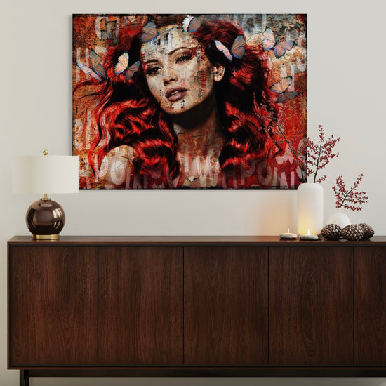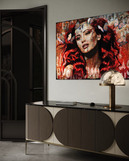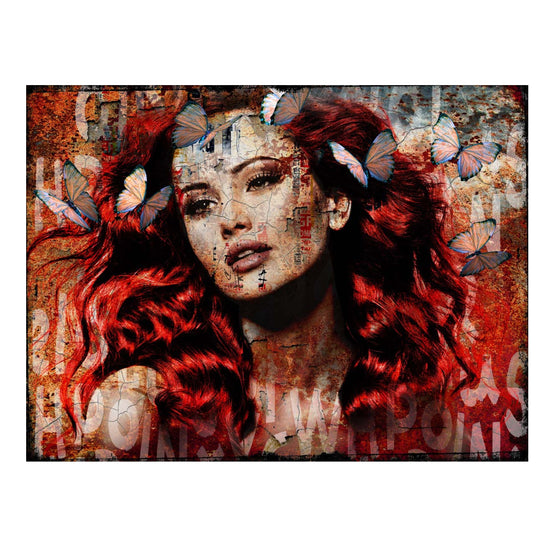 His signature series Faces are printed and edited on leather. The artwork is mounted on an aluminum dibond plate and provided with a sleek aluminum frame.