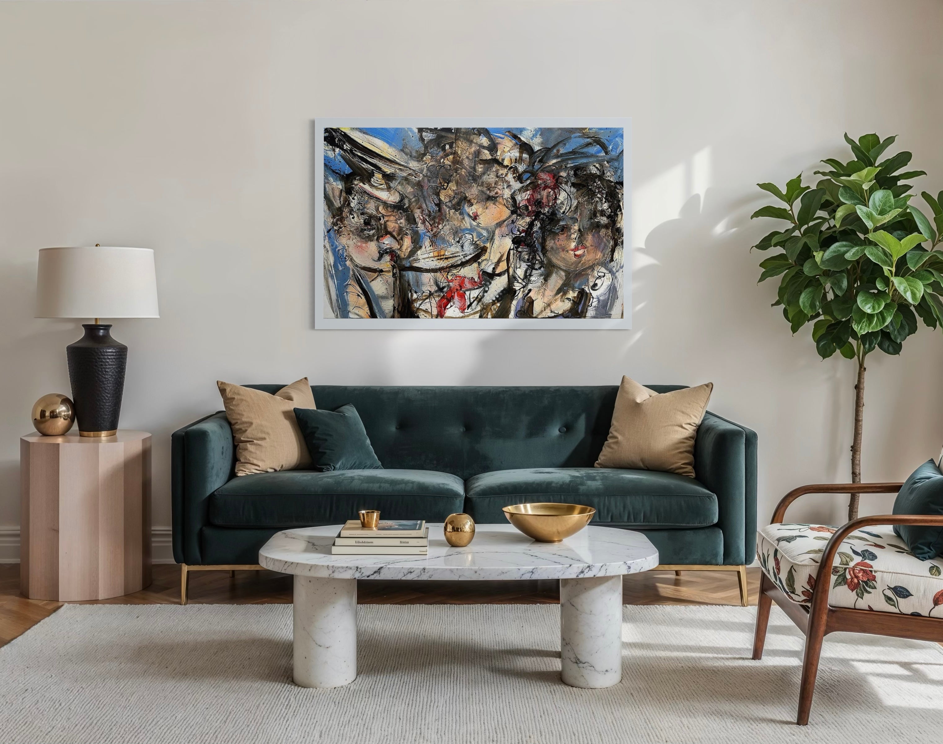 G uy Olivier (Maastricht, 1964) is a Dutch artist. In the scenes on his canvases – whether they are portraits of voluptuously self-assured young women or of drunken night owls who have suddenly seen the light or love, of dinners gone wrong or Fellini-esque circus scenes – the theatrical exuberance of life on canvas and paper is celebrated everywhere. Wherever you attend Guy Olivier exhibitions with an old-fashioned vernissage, the air vibrates and shivers between the eyes of the visitors and the colorful canvas.