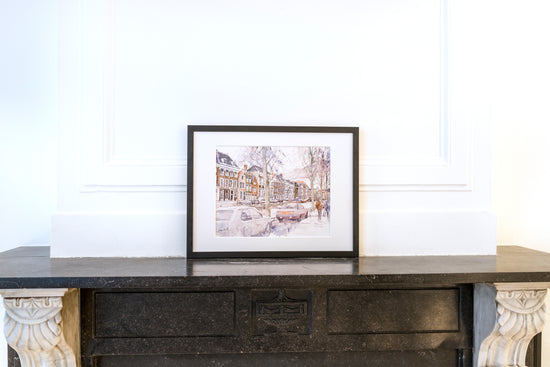 Litho van het Rapenburg in Leiden