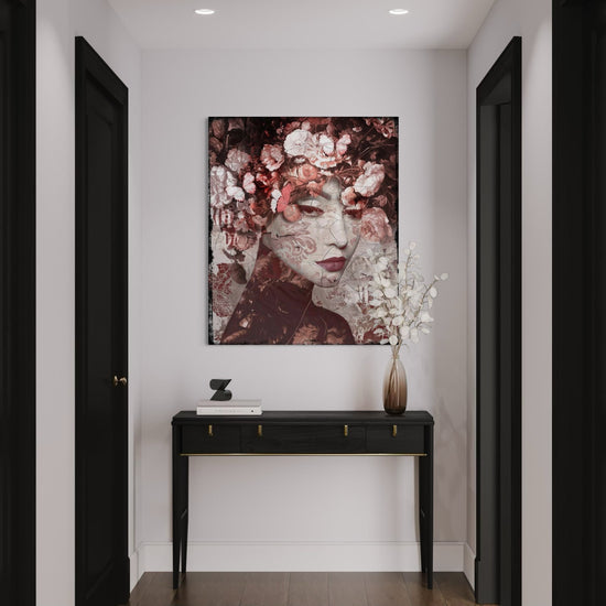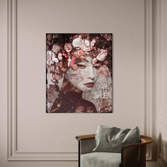 His signature series Faces are printed and edited on leather. The artwork is set on an aluminum dibond plate and provided with a sleek aluminum frame.