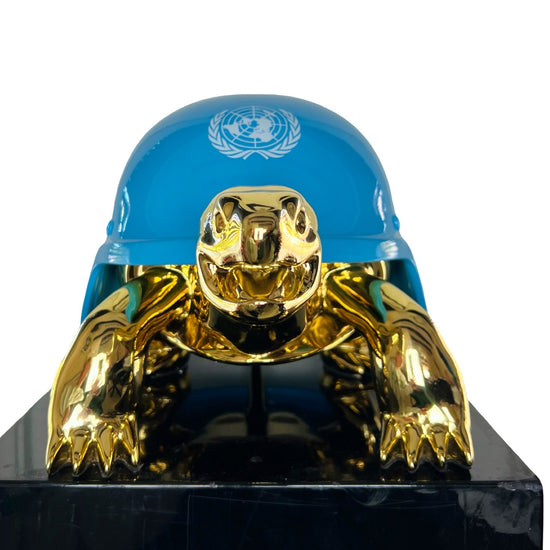 'UN Army Helmet' is an exclusive creation of the series Golden Peace Turtles by artist Van Apple.